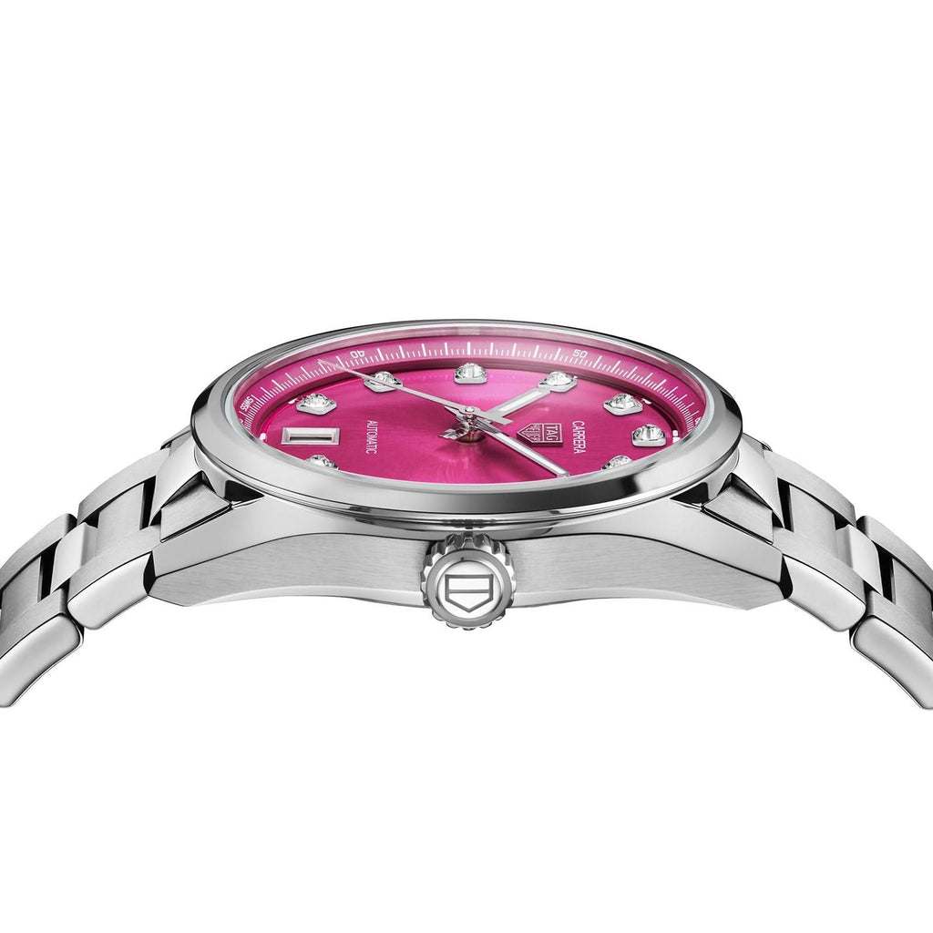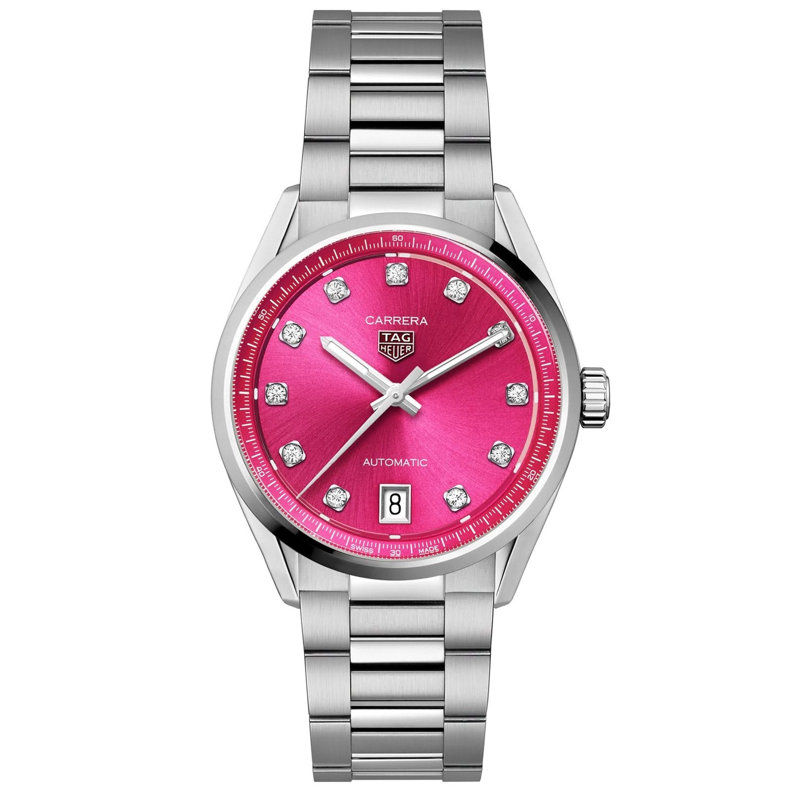 Introducing the TAG Heuer Carrera date in 36mm, a stunning timepiece featuring a turquoise blue snailed brushed dial and a robust steel case. Designed for elegance and precision, it offers a striking blend of style and functionality.