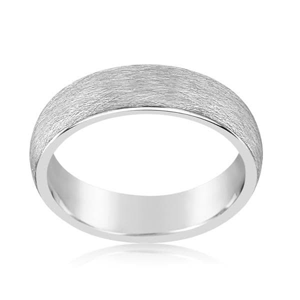 Tungsten comfort fit wedding band featuring a crystaline finish. The band is 6mm wide. Size 10.5 in stock now. Special order sizes also available. Designed by Triton.