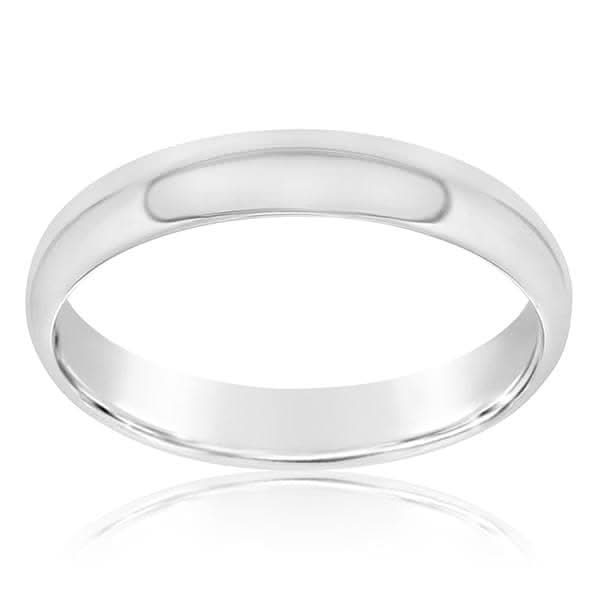 White tungsten carbide comfort fit wedding band from the Reis-Nichols collection. The band is 4mm in width. Designed by Triton. Size 10 in stock now. Special order sizes also available. Pricing may vary with size of ring. Please call or email for size information and availability.