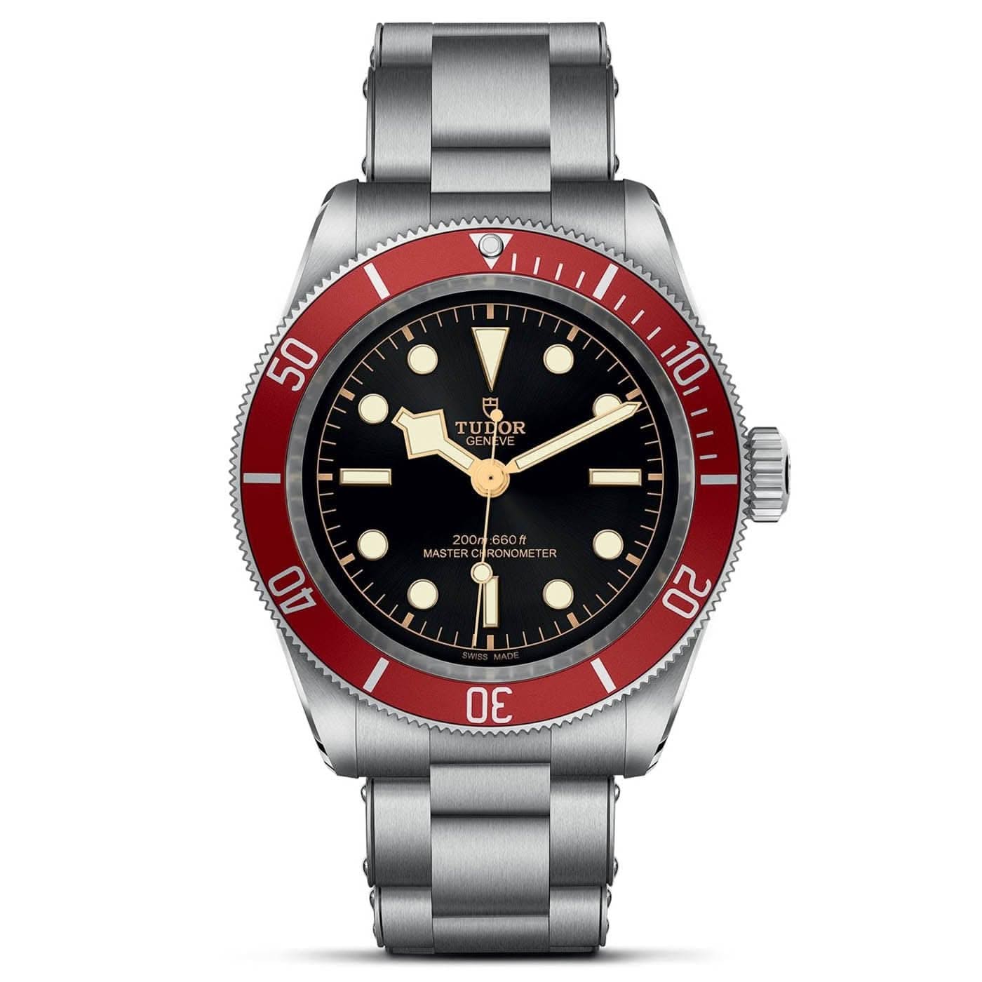 Stainless steel Tudor Black Bay automatic watch featuring a blue index dial with a stainless steel bezel and case. The watch case is 41mm and is attached to a stainless steel bracelet.