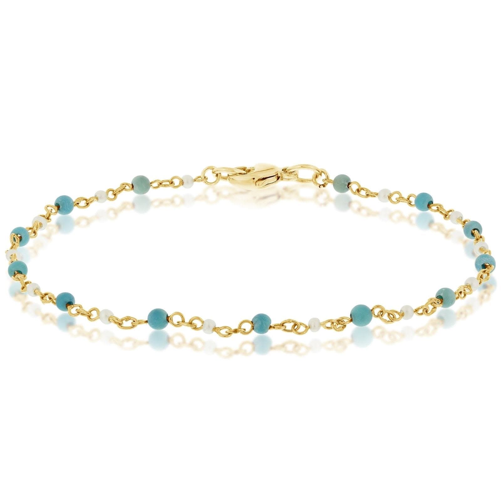 18K yellow gold turquoise and pearl station bead bracelet from the Reis-Nichols Collection. The bracelet measures 7" in length.