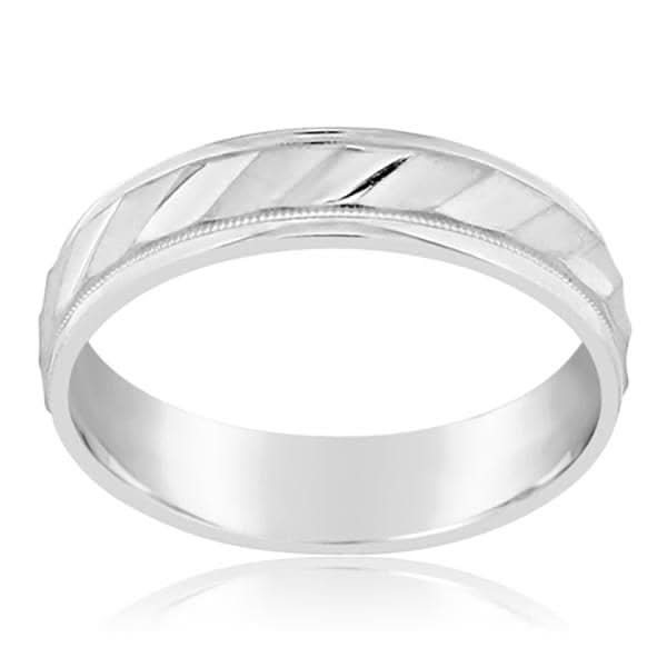 14K white gold comfort fit wedding band from the Reis-Nichols collection. The band is 5mm wide with milgrain lines with a wave texture. Special order sizes also available. Please call or email for size information and availability.