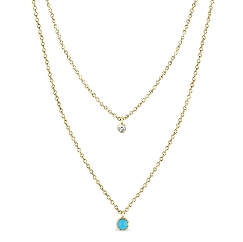ZOE CHICCO Turquoise & Diamond Bezel Layered Chain Necklace